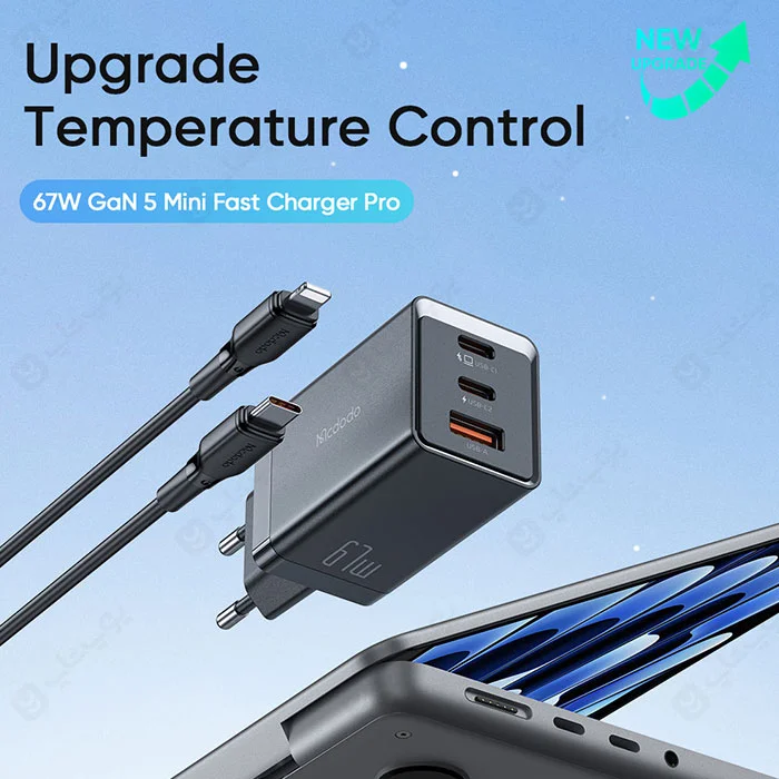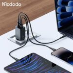 شارژر دیواری مک دودو مدل CH-1544 یک شارژر فوق العاده با کیفیت می باشد که از تکنولوژی GAN برای ساخت آن استفاده شده است. این شارژر ابعاد کوچکی دارد ولی قدرت و سرعت شارژ بالایی دارد که خواسته ی مصرف کننده را برآورده می کند. این آداپتور دارای دو پورت Type-C و یک پورت USB است که این امکان را به شما می دهد که با سه کابل به صورت هم زمان گوشی های خود را شارژ کنید. این آداپتور دارای یک کابل Type-C به لایتنینگ با توان 36W PD می باشد که دیگر نیاز به خرید کابل جداگانه ندارید.