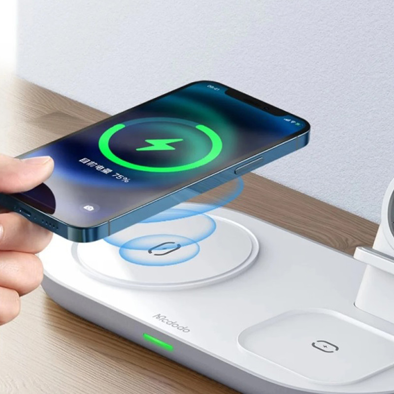 یکی از راحت ترین و بی دردسر ترین روش های شارژ، شارژ وایرلس می باشد که بدون نیاز به سیم و کابل شما می توانید گوشی خود را شارژ کنید. محصول Mcdodo CH-7062 با قابلیت سه کاره این امکان را به شما می دهد که هم زمان اپل واچ , ایرپاد و گوشی موبایل خود را به صورت وایرلس با سرعت شارژ بالا شارژ کنید. یک چراغ LED روی دستگاه وجود دارد که نشانگر وضعیت شارژ دستگاه ها می باشد.