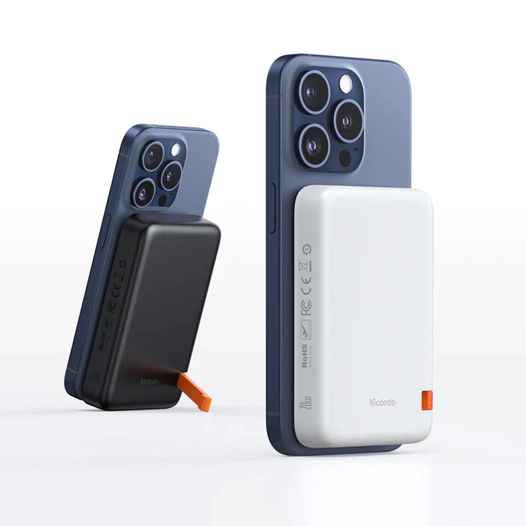 پاوربانک محصولی است که این امکان را به شما می دهد که در مواقعی که به پریز برق برای شارژ گوشی یا تبلت خود دسترسی ندارید با استفاده از آن چندیدن بار بسته به حجم پاوربانک آن ها را شارژ کنید. پاوربانک مک دودو MC-5100 با ظرفیت 10000 میلی آمپر با وزن و اندازی جمع و جور و سرعت شارژ بالای آن گزینه ی مناسبی برای انتخاب می باشد. خصوصیت این پاوربانک بی سیم (وایرلس) است که بدون نیاز به کابل گوشی شما را شارژ می کند. این محصول یک کابل Type-C جهت شارژ پاوربانک دارد که دیگر نیاز به خریدن کابل جداگانه ندارید. روی پاوربانک یک نمایشگر دیجیتال برای نشان دادن میزان شارژ پاوربانک می باشد.