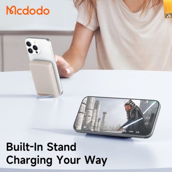 پاوربانک محصولی است که این امکان را به شما می دهد که در مواقعی که به پریز برق برای شارژ گوشی یا تبلت خود دسترسی ندارید با استفاده از آن چندین بار بسته به حجم پاوربانک آن ها را شارژ کنید. پاوربانک مک دودو MC-7810 با ظرفیت 10000 میلی آمپر با وزن و اندازی جمع و جور و سرعت شارژ بالای آن گزینه ی مناسبی برای انتخاب می باشد. خصوصیت این پاوربانک بی سیم (وایرلس) است که بدون نیاز به کابل گوشی و اپل واچ شما را شارژ می کند. این محصول یک کابل Type-C به Type-C به طول 20 سانتی متر جهت شارژ پاوربانک دارد که دیگر نیاز به خریدن کابل جداگانه ندارید. از دیگر خصوصیات این محصول Qi2 گواهی برای شارژ سریع تر و تراز مغناطیسی بهتر و یک پایه در بدنه ی پاوربانک طراحی شده است که می توان به صورت افقی و عمودی از آن استفاده کرد.